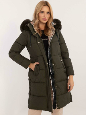 Dlouhá zimní bunda s kostkovanou podšívkou